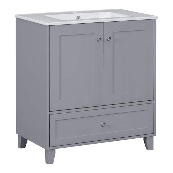 30 in. W x 18 in. D x 33.8 in. H Single Sink Freestanding Bath Vanity in Blue-Gray with White Ceramic Sink Top