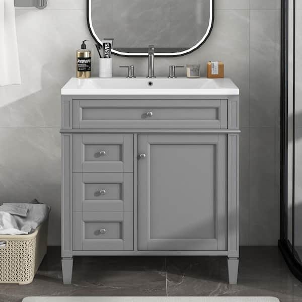 30 in. W x 18 in. D x 33 in. H Modern Freestanding Bath Vanity in Gray with White Resin Top Sink