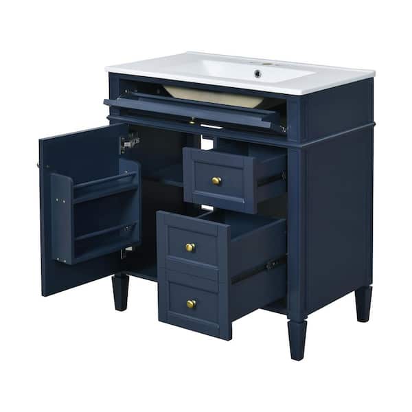 30 in. W x 18 in. D x 33 in. H Single Sink Freestanding Bath Vanity in Blue with White Ceramic Top