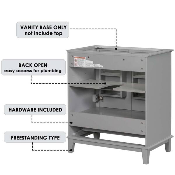 30 in. W x 18 in. D x 34 in. H Bath Vanity Cabinet without Top in Gray, Multi-functional Bathroom Cabinet, Solid Frame