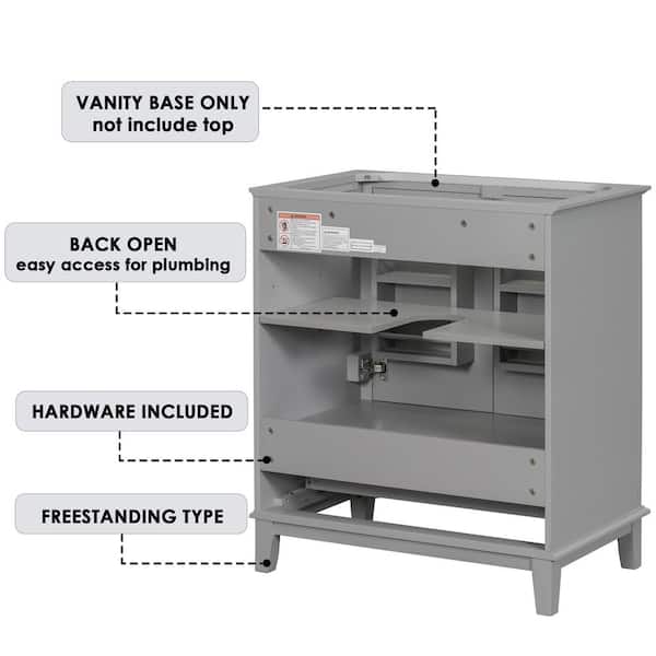 30 in. W x 18 in. D x 34 in. H Freestanding Bath Vanity Cabinet without Top in Grey