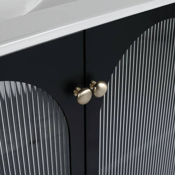 30 in. W x 18 in. D x 34 in. H Freestanding Bath Vanity in Black with White Ceramic Top