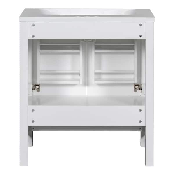 30 in. W x 18 in. D x 34 in. H Freestanding Bath Vanity in White with White Resin Single Sink with 2 Doors and a Drawer