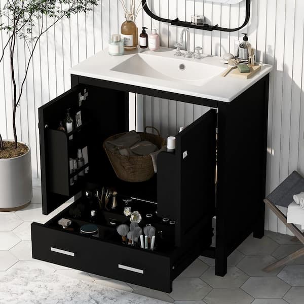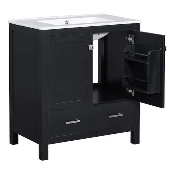 30 in. W x 18 in. D x 34 in. H Single Sink Bath Vanity in Black with White Ceramic Top
