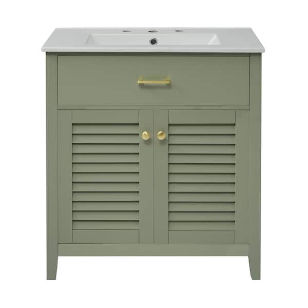 30 in. W x 18 in. D x 34 in. H Single Sink Freestanding Bath Vanity in Green with White Ceramic Top