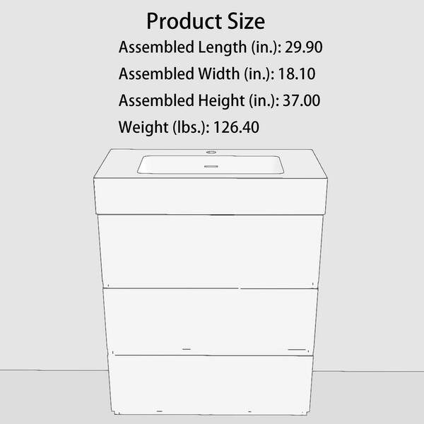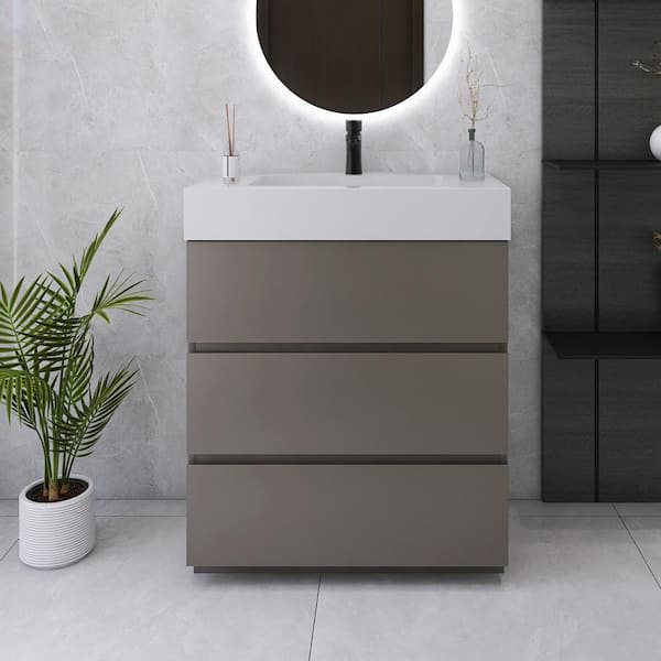 30 in. W x 18 in. D x 37 in. H Single Sink Freestanding Bath Vanity with White Cultured Marble Top in Grey