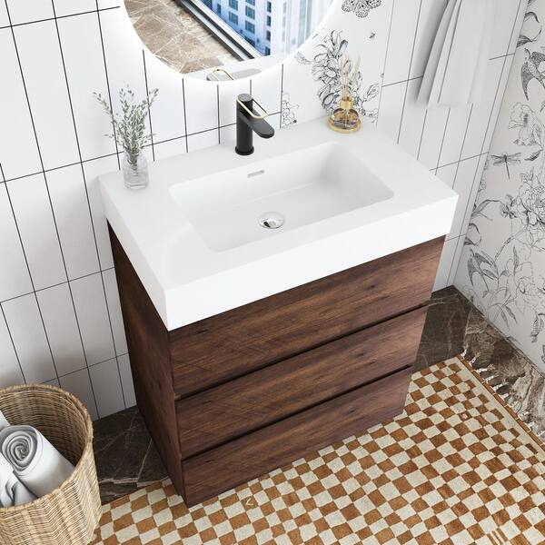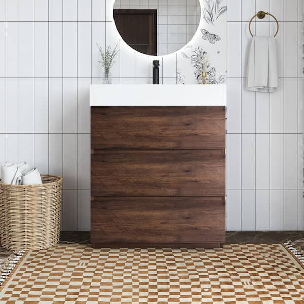 30 in. W x 18 in. D x 37 in. H Single Sink Freestanding Bath Vanity with White Cultured Marble Top in Walnut