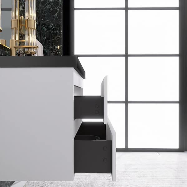 30 in. W x 19.5 in. D x 22.5 in. H Single Sink Bathroom Vanity in High Gloss White with Black Solid Surface Top