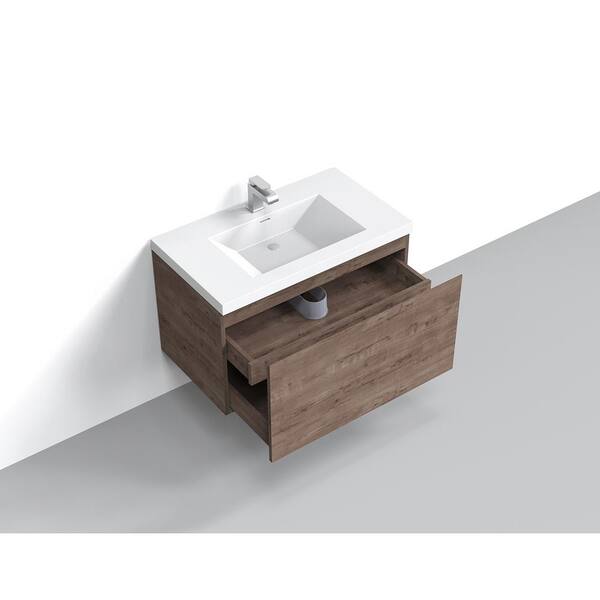 30 in. W x 20 in D x 22.5 in H Single Sink Floating Bath Vanity with Inside Drawers in Smoke Oak with Qt. White Top