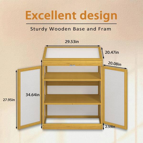30 in. W x 20 in. D x 38 in. H 2-Tier Outdoor Polycarbonate Pine Wood Greenhouse Cold Frame Mini Greenhouse Cabinet