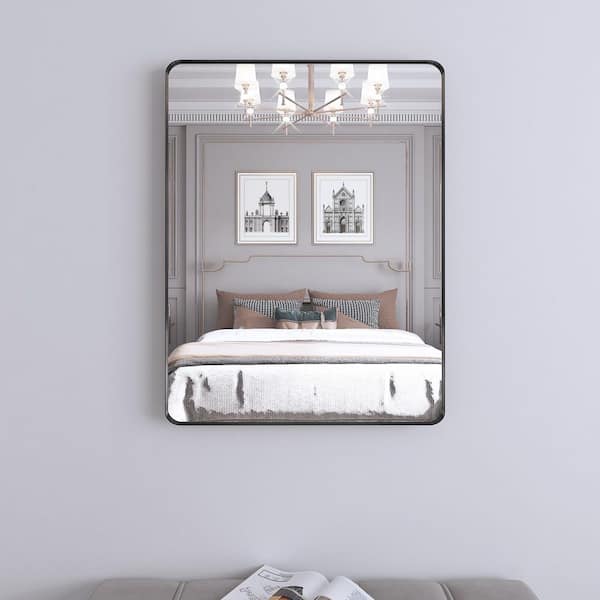 30 in. W x 22 in. H Small Rectangular Framed Wall Mounted Bathroom Vanity Mirror in Black