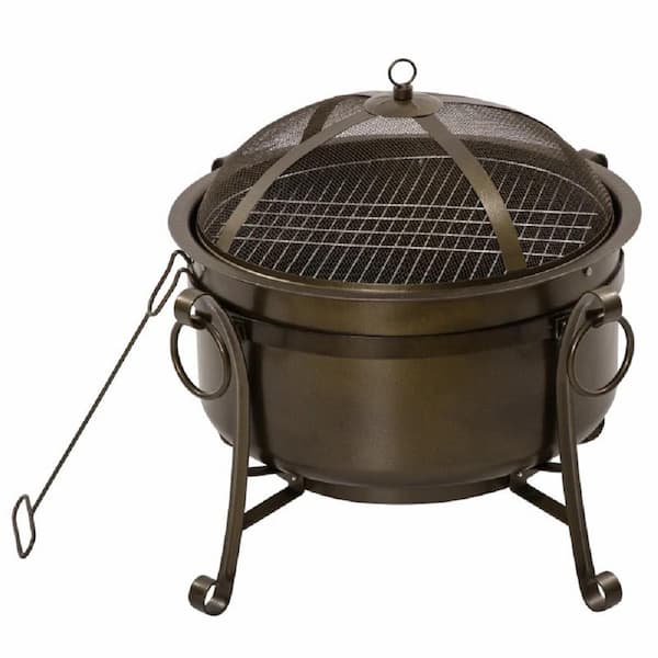 30 in. W x 26.5 in. H Outdoor Steel Wood Burning Black Fire Pit with BBQ Grill, Screen Cover, Fire Poker for Backyard