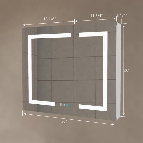 30 in. W x 26 in. H Rectangular Aluminum Medicine Cabinet with Mirror and Shelves