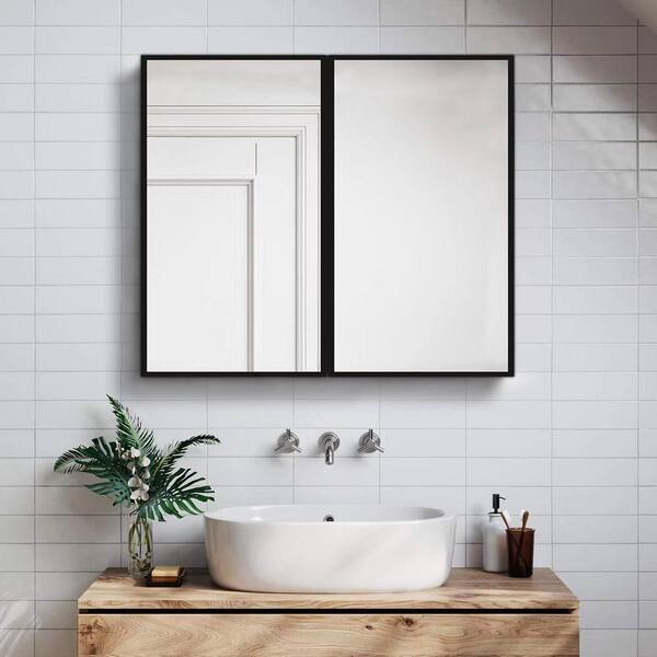 30 in. W x 26 in. H Rectangular Black Iron and Aluminum Recessed/Surface Mount Large Storge Medicine Cabinet with Mirror