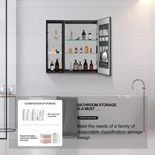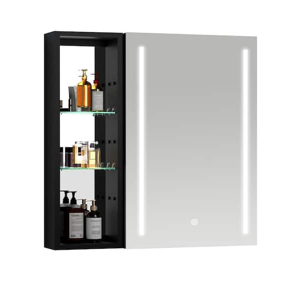 30 in. W x 30 in. H Black Aluminum Surface Mount Medicine Cabinet with Mirror and LED Light Small Cabinet No Door