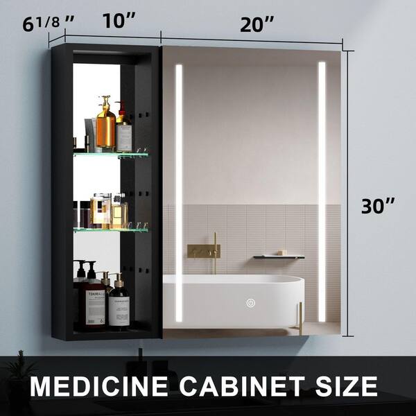 30 in. W x 30 in. H Black Rectangular Aluminum Recessed or Surface Mount Medicine Cabinet, Medicine Cabinet with Mirror