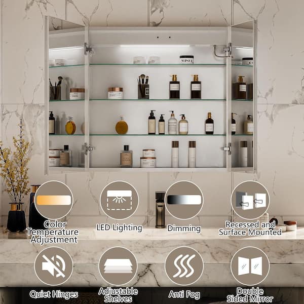 30 in. W x 30 in. H Medium Rectangular Silver Aluminum Built-In/Surface Mount Medicine Cabinet with Mirror and LED