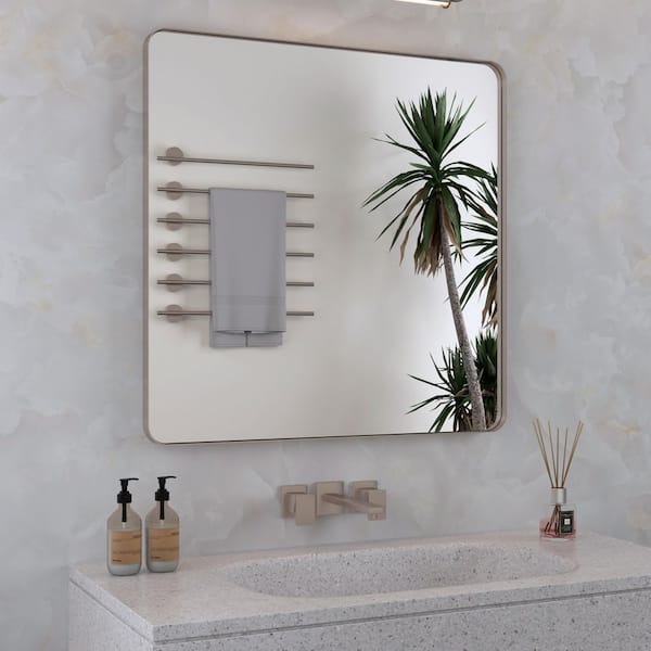 30 in. W x 30 in. H Rectangular Framed Wall Mounted Bathroom Vanity Mirror in Brushed Nickel