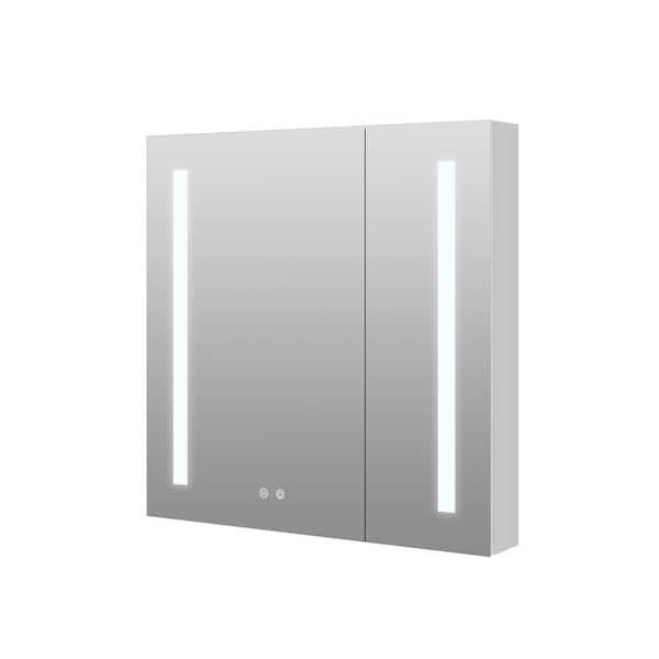 30 in. W x 30 in. H Rectangular Silver Aluminum Surface Mount Dimmable LED Medicine Cabinet with Mirror