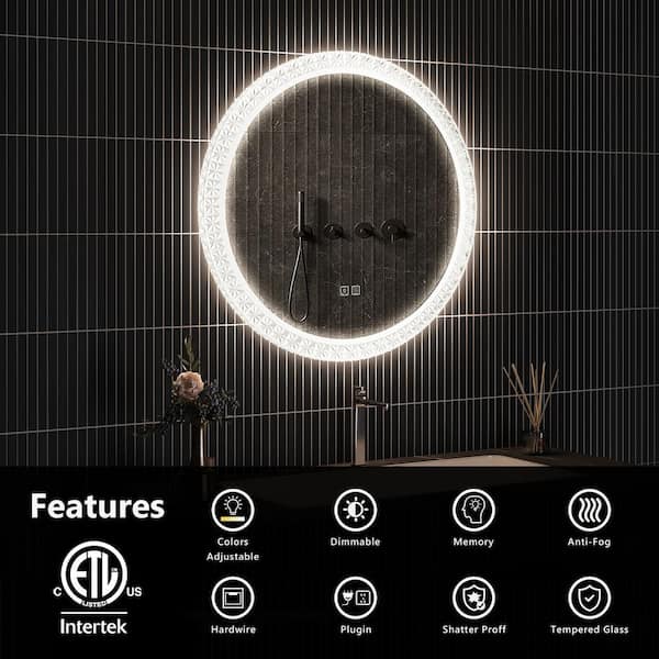 30 in. W x 30 in. H Round Acrylic Framed LED Light with Dimmable and Anti-Fog Wall Mounted Bathroom Vanity Mirror