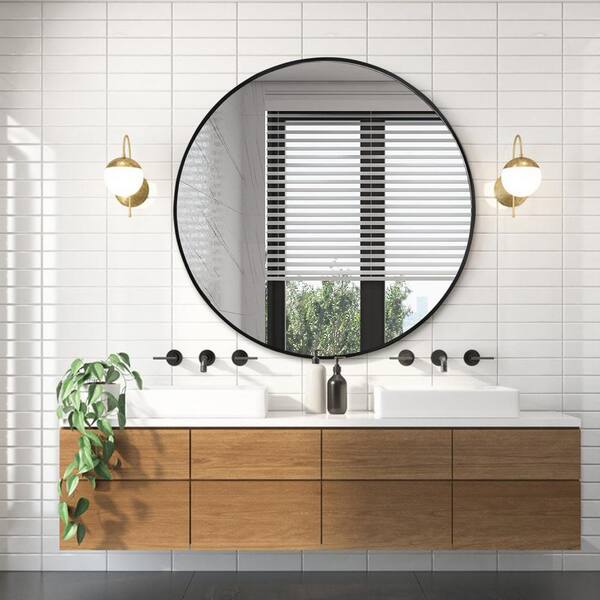 30 in. W x 30 in. H Round Aluminum Framed Wall Bathroom Vanity Mirror in Matte Black