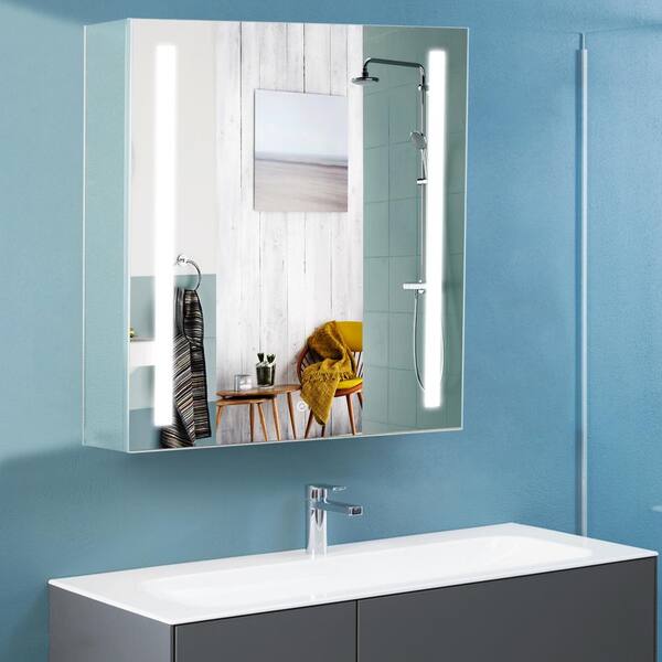 30 in. W x 30 in. H Silver Aluminum Frameless Surface Mount Soft Close Medicine Cabinet with Mirror and LED Lighting
