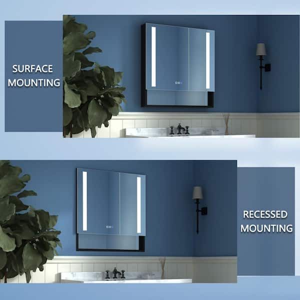 30 in. W x 32 in. H Rectangular Aluminum Medicine Cabinet with Mirror