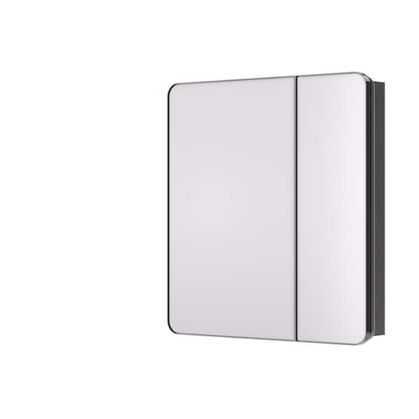 30 in. W x 32 in. H Rectangular Black Stainless Steels Framed Recessed/Surface Mount Medicine Cabinet with Mirror