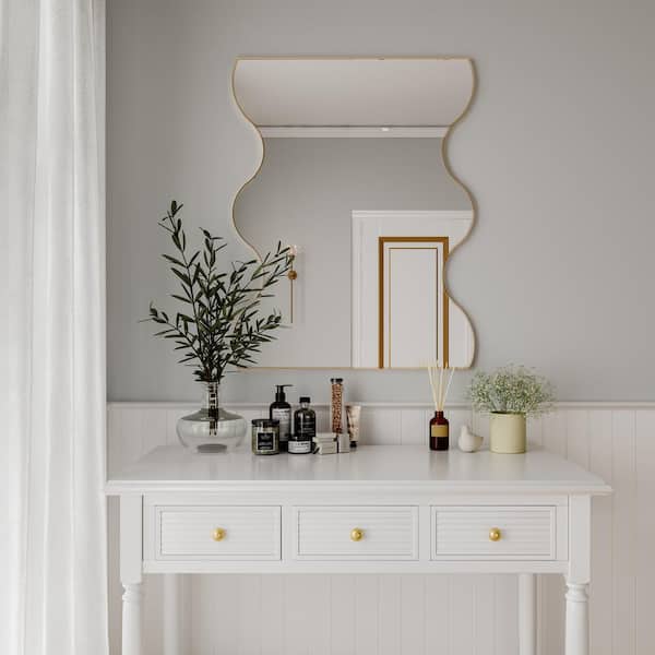 30 in. W x 35 in. H Metal Rectangular Framed Wall Bathroom Vanity Mirror in Gold with 2 Wavy Sides, Wall Decor
