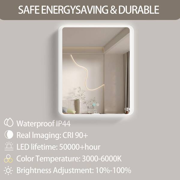 30 in. W x 36 in. H LED Rectangular Frameless Wall Bathroom Vanity Mirror Touch Control in White
