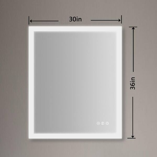 30 in. W x 36 in. H Rectangular Frameless Anti-Fog Adjustable Dimmable Wall-Mounted Bathroom Vanity Mirror in Silver