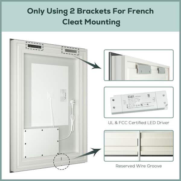 30 in. W x 36 in. H Rectangular Frameless LED Light Anti-Fog Wall Bathroom Vanity Mirror with Frontlit and Backlit