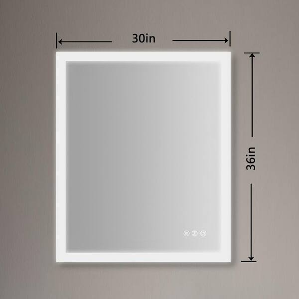 30 in. W x 36 in. H Rectangular Frameless LED Wall Mount Anti-Fog Dimmable Bathroom Vanity Mirror