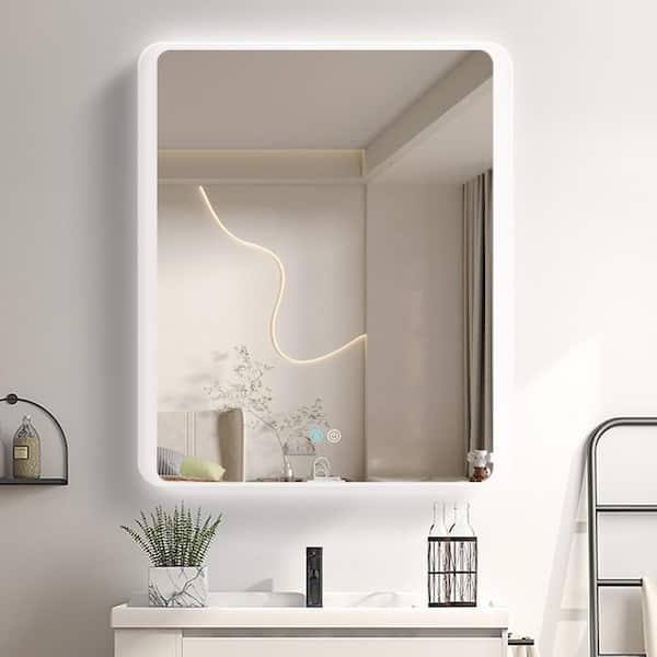 30 in. W x 36 in. H Rectangular Round Corner Frameless Tri-Color LED Wall Mount Bathroom Vanity Mirror with Anti-Fog