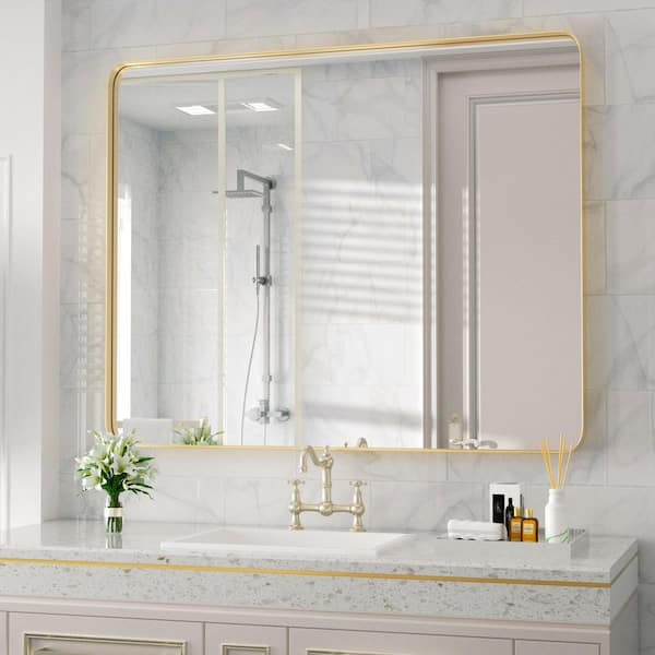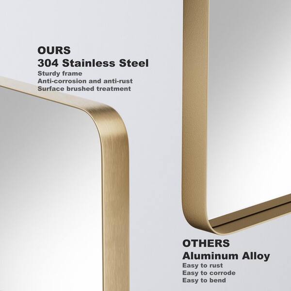30 in. W x 40 in. H Large Rectangular Stainless Steel Framed Mirror Wall Mirror Bathroom Vanity Mirror in Brushed Gold