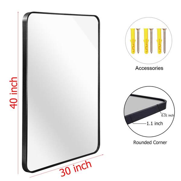 30 in. W x 40 in. H Rectangular Alluminum Alloy Framed Wall Bathroom Vanity Mirror in Black