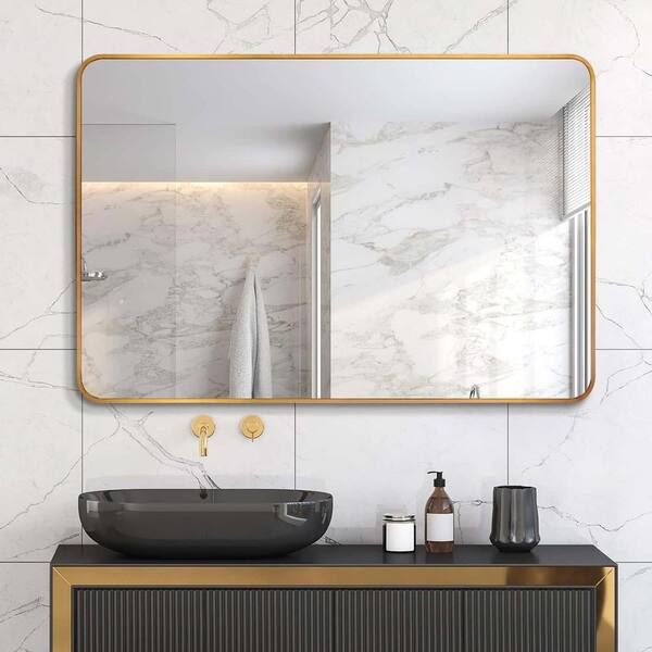 30 in. W x 40 in. H Rectangular Aluminum Framed Wall Mounted Mirror Vanity Mirror Living Room, Bedroom in Gold