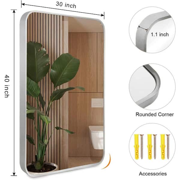 30 in. W x 40 in. Rectangular Aluminum Framed Wall-Mounted Bathroom Vanity Mirror in SIlver
