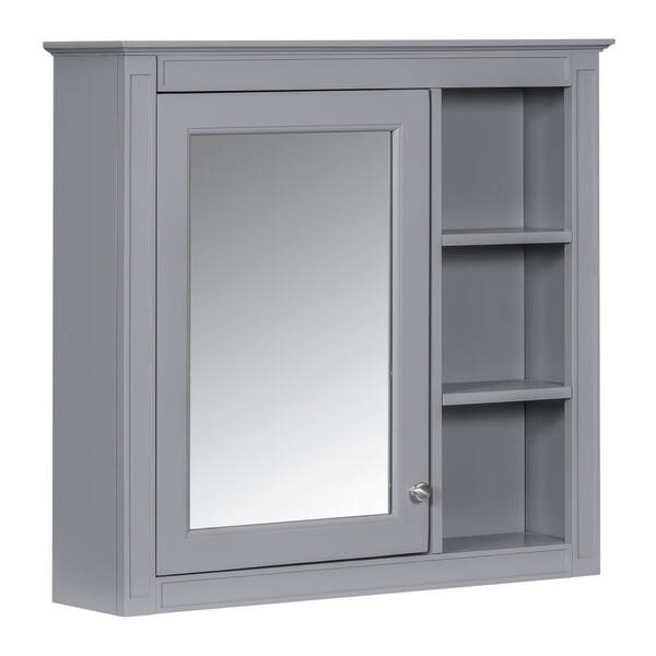 30 in. W x 7.3 in. D x 28 in. H Rectangle Frame Mirror Cabinet Wall Mounted Bathroom Vanity Mirror in Grey