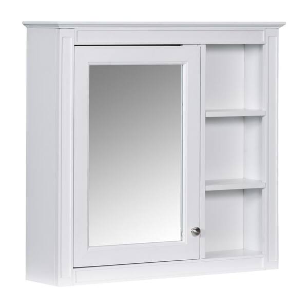 30 in. W x 7.3 in. D x 28 in. H Rectangle Frame Wall Mounted Bathroom Vanity Mirror in White