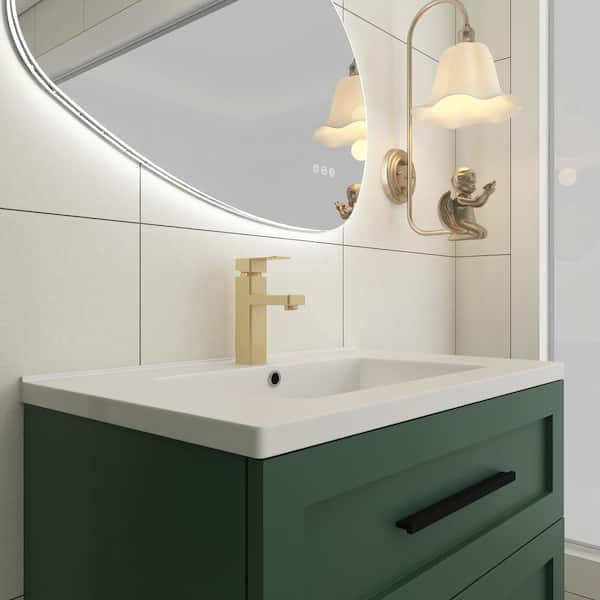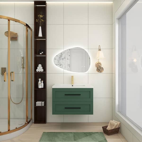 30 in. Wall-Mounted Green Bath Vanity with White Ceramic Top Unassembled