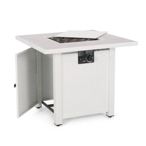 30 in. White Outdoor Square Metal Fire Pit with Ceramic Tile Top - 40,000 BTU