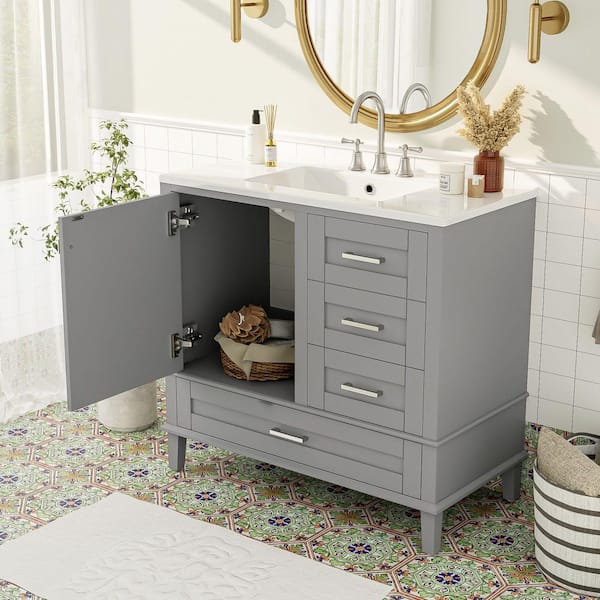 30 in. x 18 in. Bathroom Vanity Organizer Combo Storage Cabinet Set with Undermount Sink, White