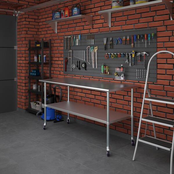 30 in. x 72 in. Stainless Steel Work Table with Casters : Mobile Metal Kitchen Utility Table with Bottom Shelf