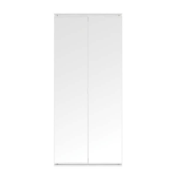 30 in. x 80.5 in. Full Mirrored Glass Hollow Core White Finished Metal Bifold Door with Hardware