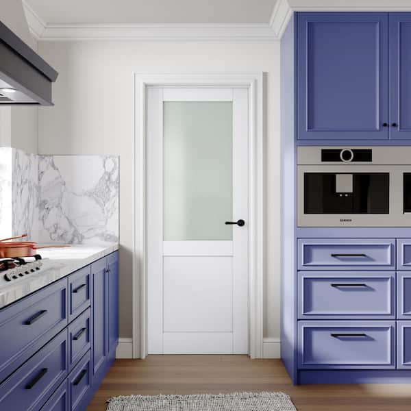 30 in. x 80 in. 1/2-Lite Frosted Glass Left White Solid Core Wood Single Prehung Interior Door with Quick Assemble Jamb