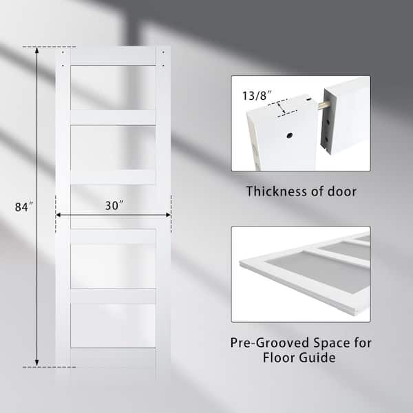 30 in. x 84 in. 5 Lite Tempered Frosted Glass White MDF Sliding Barn Door Slab Without Hardware Kits
