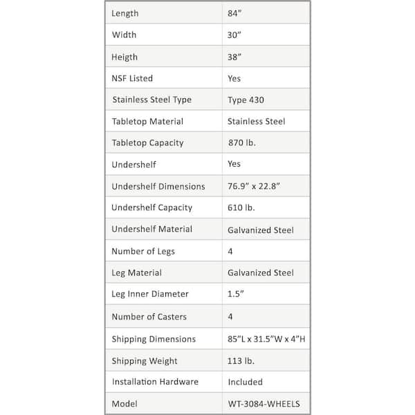 • Made with corrosion-resistant 430 Stainless Steel table top.