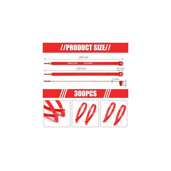 300 Pack Red Plastic Truck Seals Tamper Evident Security Tag Sequentially Numbered Disposable Lock for Transport