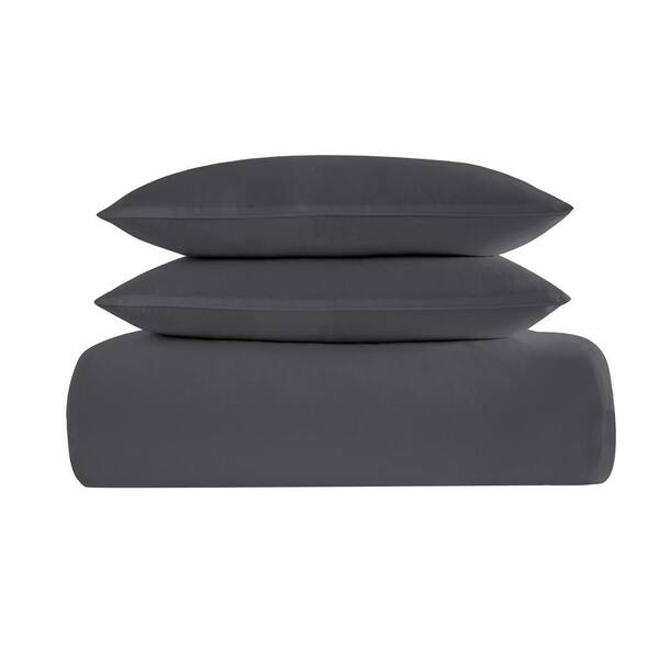 300TC 2-Piece Dark Grey Cotton Sateen Twin/Twin XL Duvet Cover Set
